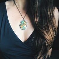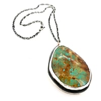 A massive piece of Tyrone turquoise is the focus of this necklace.