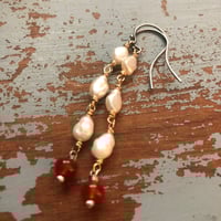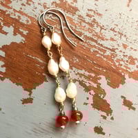 baroque pearl and carnelian earrings in sterling silver and 10k gold