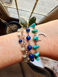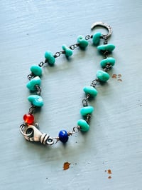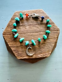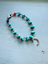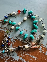 A one of a kind wire wrapped turquoise and gemstone bracelet.
