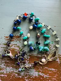 Faceted lapis lazuli and a smooth carnelian beauty finish the piece.