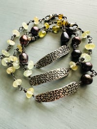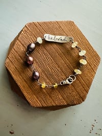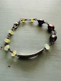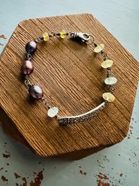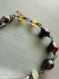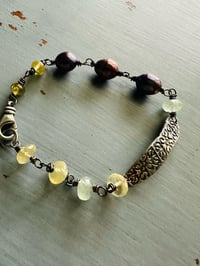 Handcrafted in Tennessee, a one of a kind wire wrapped pearl and gemstone bracelet.