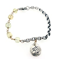 A sterling silver link bracelet, jazzed up with prehnite, 14k yellow gold, and my Om charm.