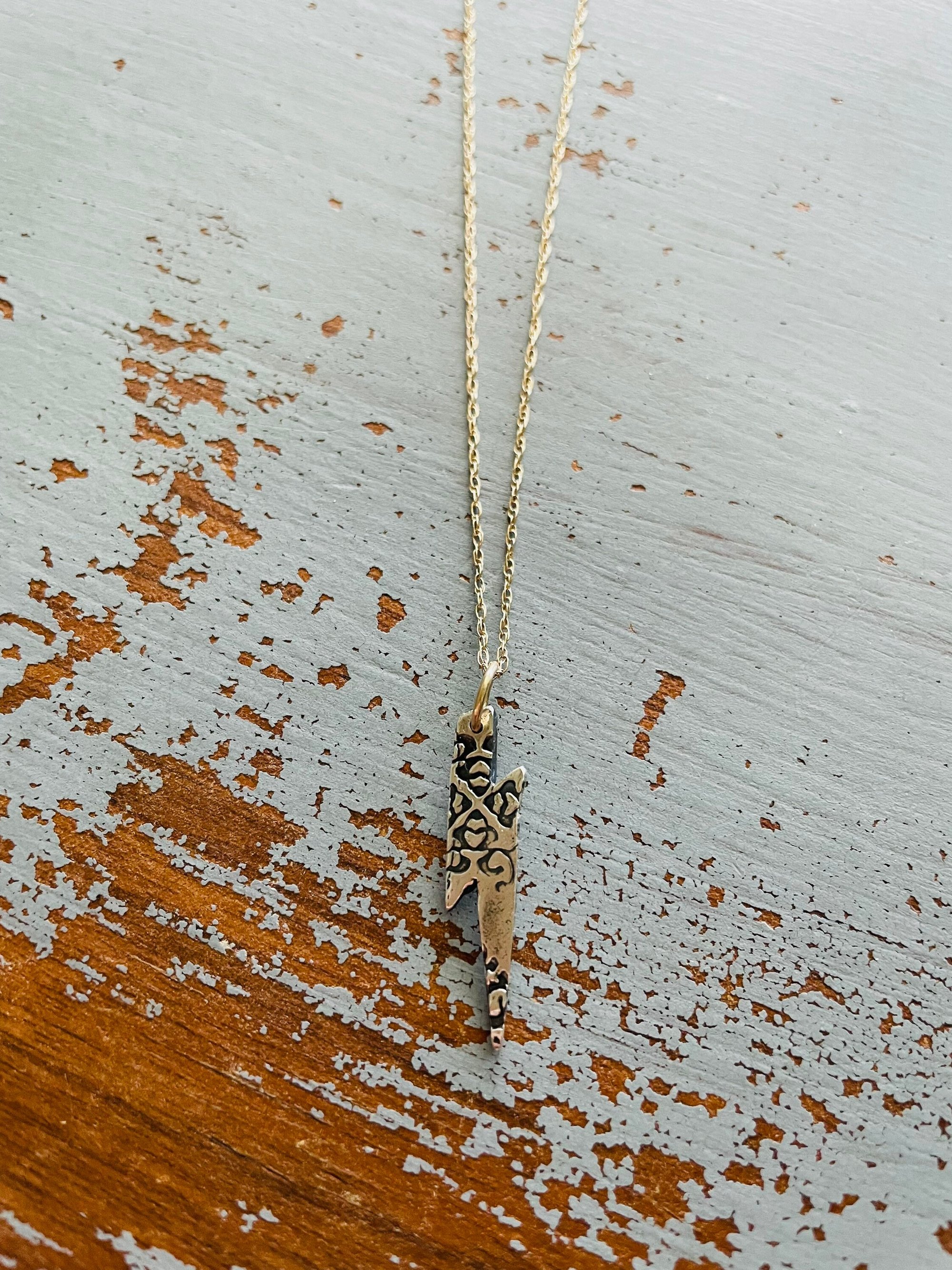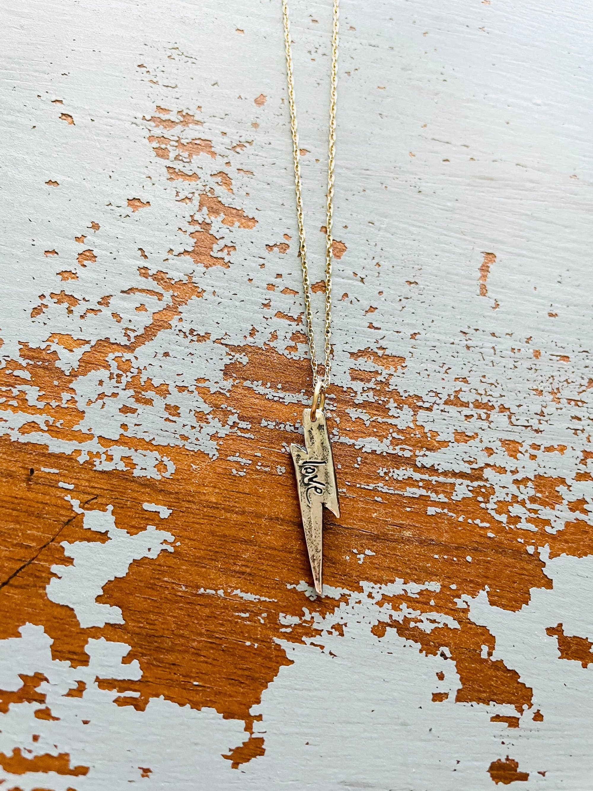 sterling silver lightning bolt necklace with 14k gold chain . engraved love message necklace by p...