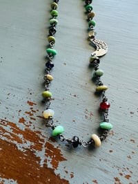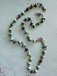 variscite ruby and boulder opal gemstone necklace with crescent moon charm