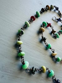 Meticulously handcrafted in my Nashville studio, a wire wrapped New Lander variscite and gemstone necklace.